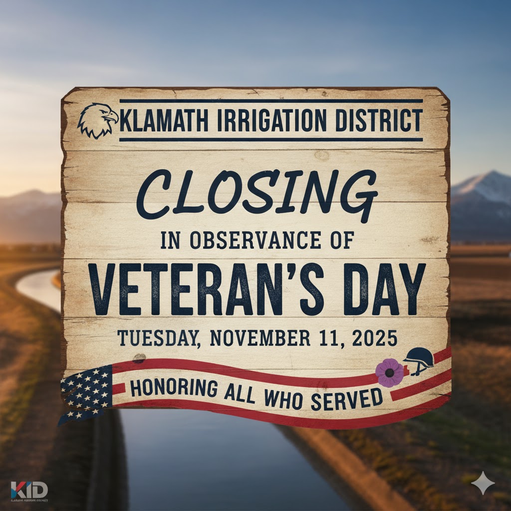 The Klamath Irrigation District, described in Article 1, Section 1 of the By-Laws of the Klamath Water Users Association, was officially named in 1905. The District was formally established as a special government district after the popular vote in 1917.